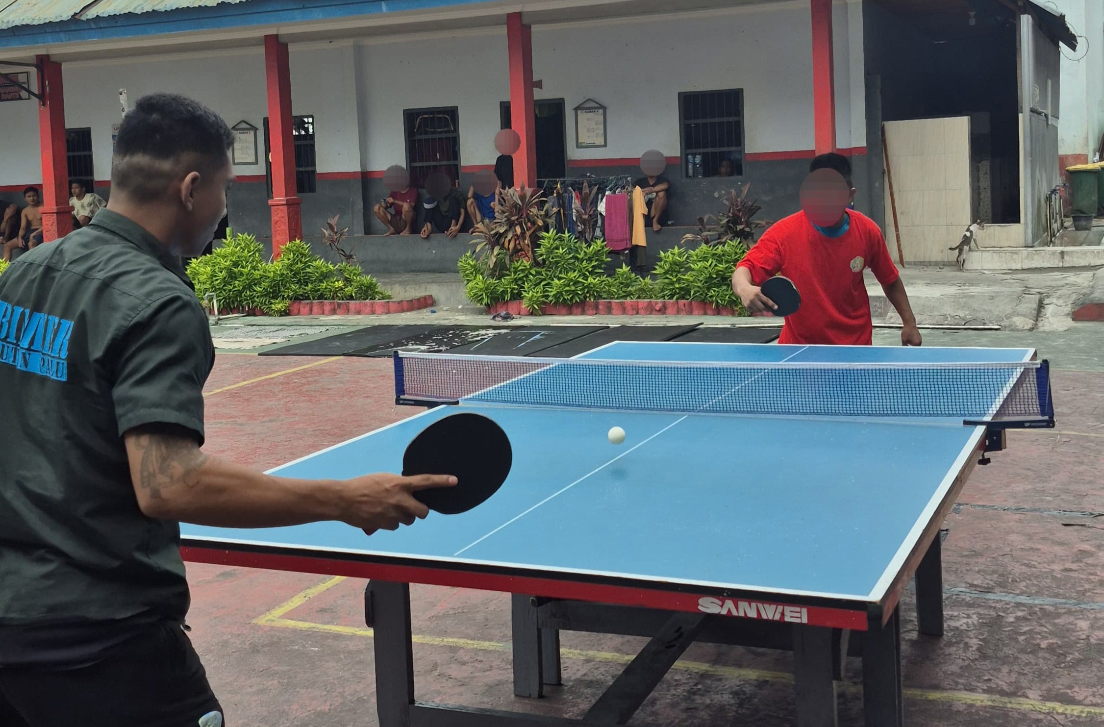 Latihan Tenis Meja ini rutin dilaksanakan warga binaan setiap hari Jum’at dan Sabtu pada pagi hari usai sarapan.