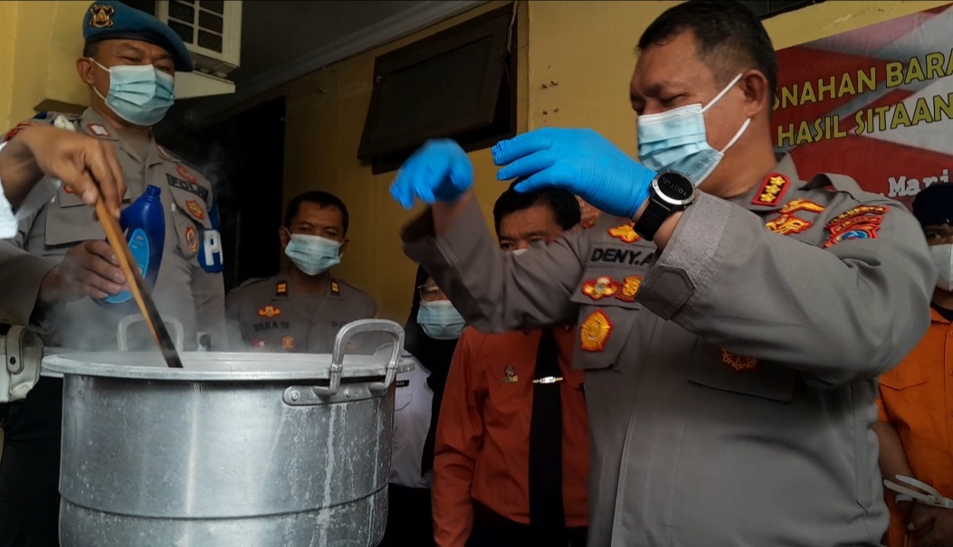 Pemusnahan ini dipimpin langsung oleh Kapolresta Palu Kombes Pol Deny Abrahams.