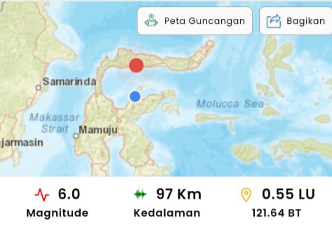 Outentik-Gempa bumi berkekuatan 6,0 magnitudo mengguncang wilayah Pahuwato, Gorontalo, pada Sabtu malam, 3 Mei 2025 pukul 20.51 Wita.