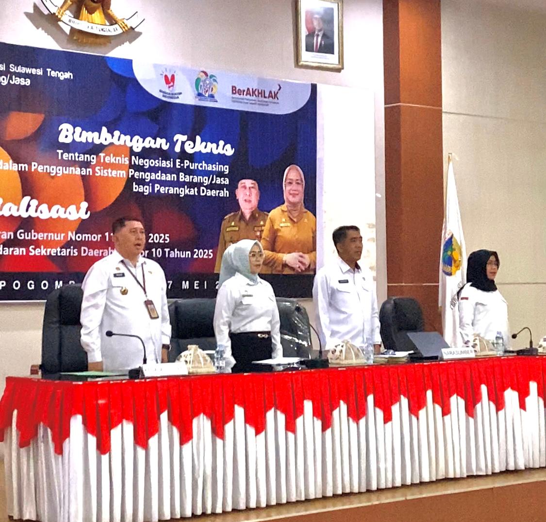 OUTENTIK – Pemerintah Provinsi Sulawesi Tengah menggelar Sosialisasi dan Bimbingan Teknis (Bimtek) tata cara penggunaan E-Katalog versi terbaru pada Rabu, 7 Mei 2025, di Gedung Pogombo, Kantor Gubernur Sulteng.