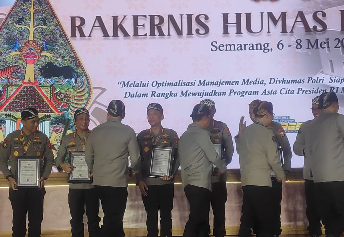 Penghargaan diserahkan langsung oleh Kadivhumas Polri Irjen Pol. Dr. Sandi Nugroho, S.I.K., S.H., M.Hum., kepada Kabidhumas Polda Sulteng Kombes Pol. Djoko Wienartono saat penutupan Rakernis, Rabu (7/5/2025).