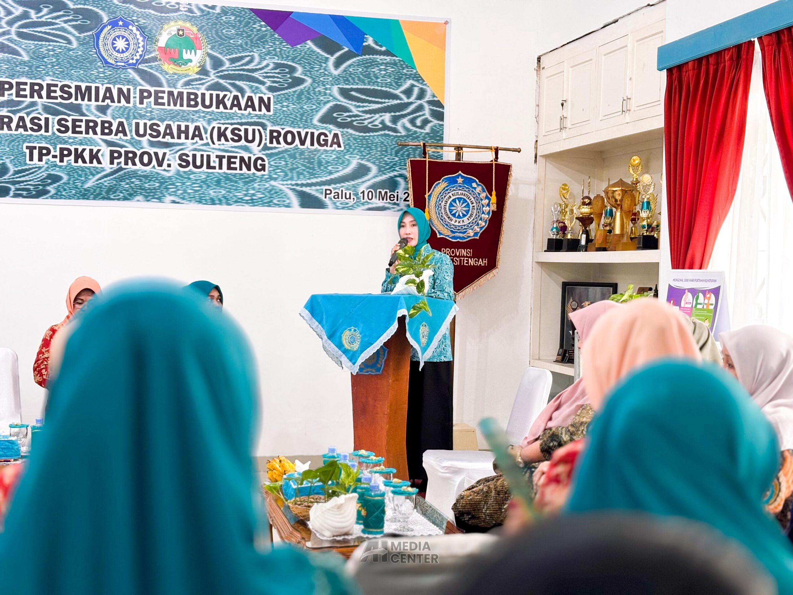OUTENTIK-Ketua Tim Penggerak PKK Provinsi Sulawesi Tengah, Ir. Sry Nirwanti Bahasoan, meresmikan Koperasi Serba Usaha (KSU) Roviga milik TP PKK Sulteng pada Sabtu, 10 Mei 2025, di Palu.