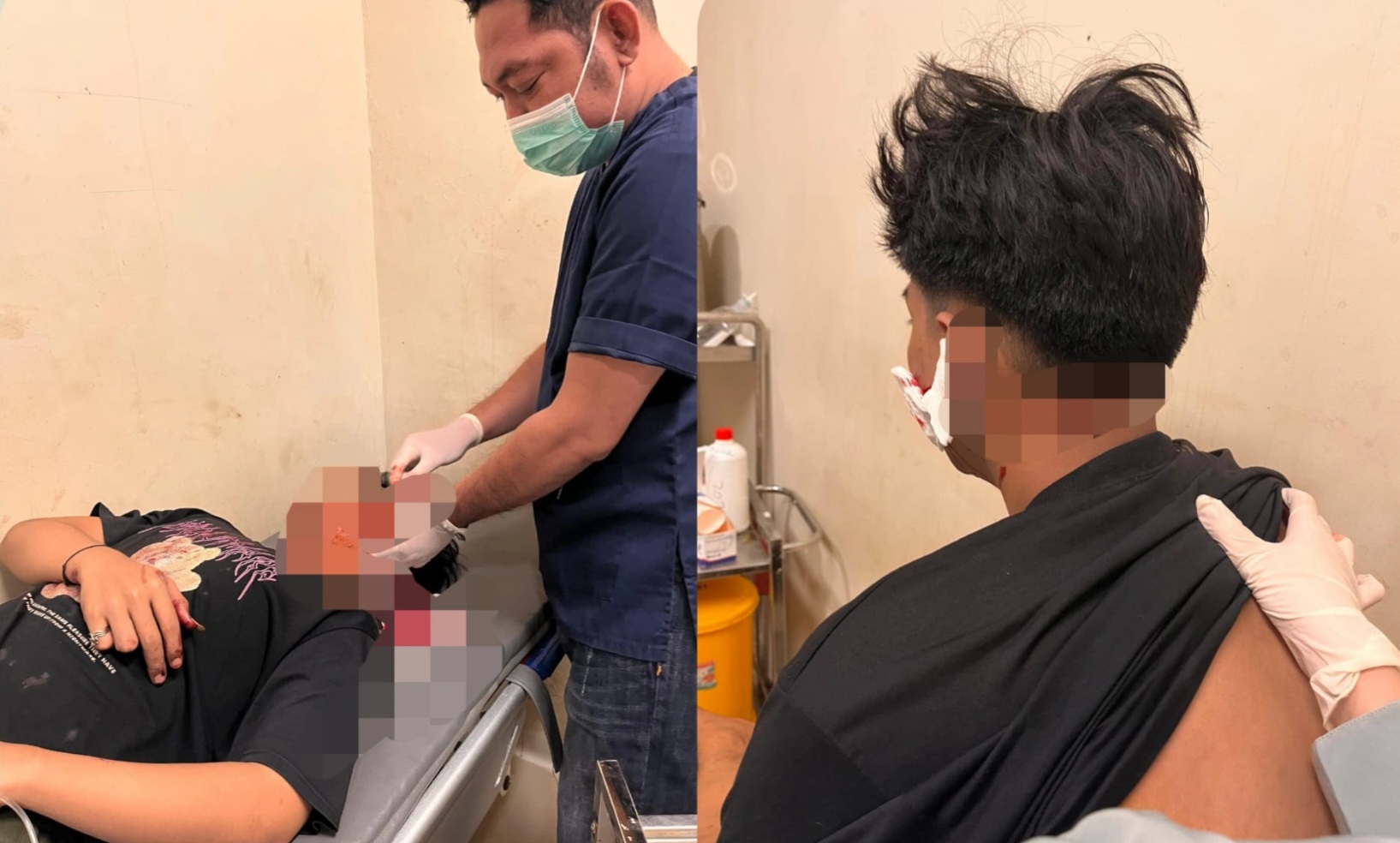 Korban mengalami luka serius di pipi dan punggung setelah diserang dengan parang oleh tiga orang tak dikenal.