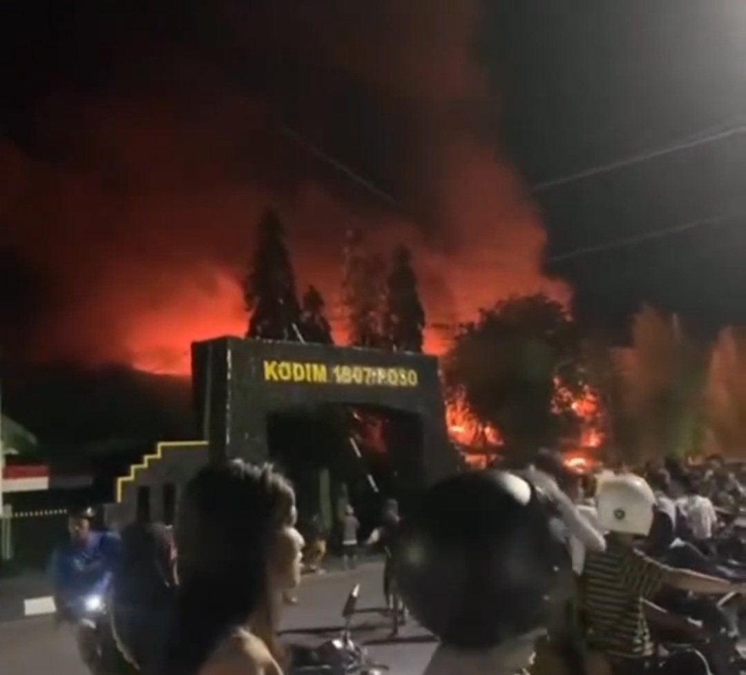 OUTENTIK-Kantor Komando Distrik Militer (KODIM) 1307/Poso di Sulawesi Tengah terbakar.
