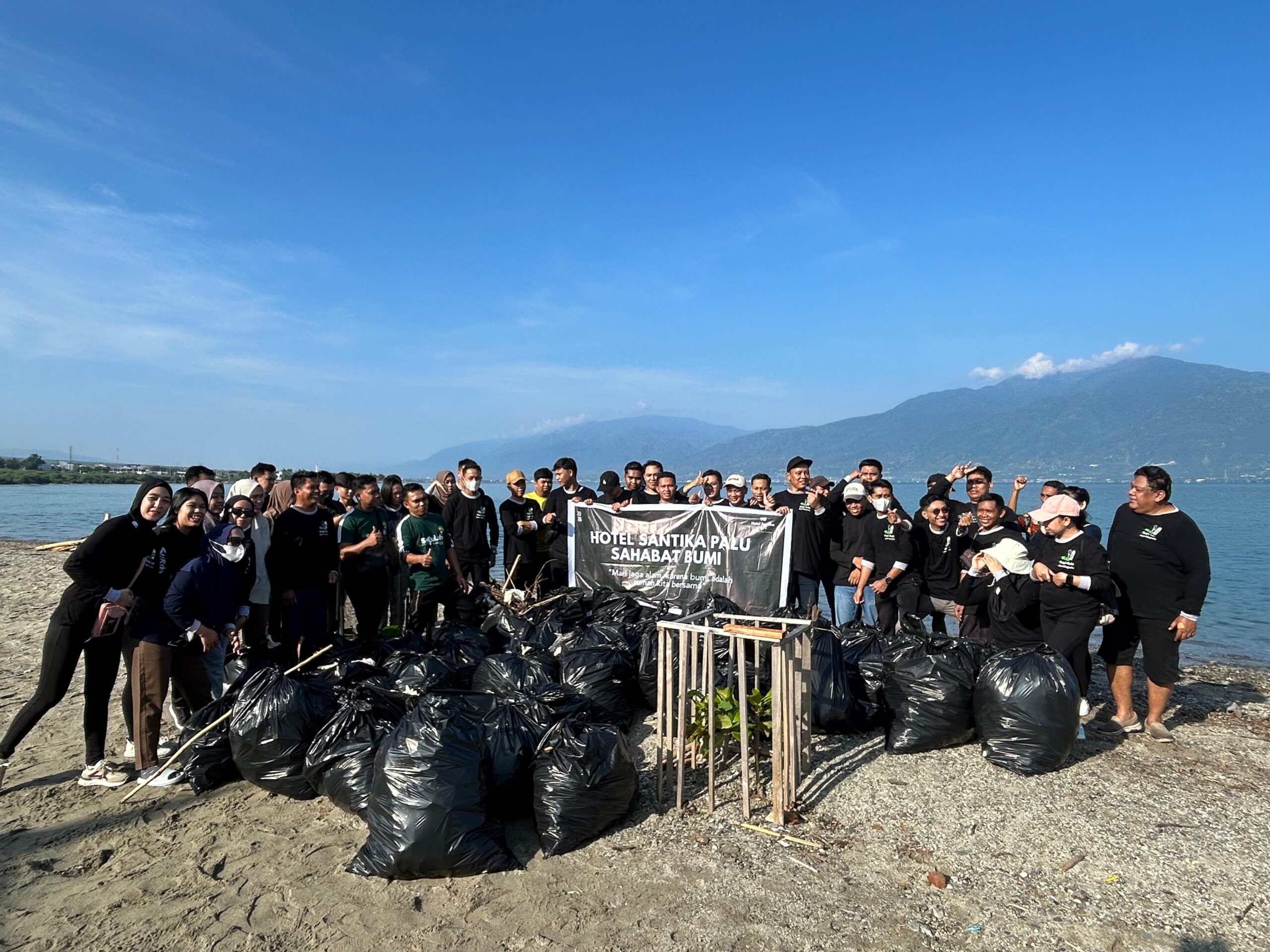 Bersih pantai ini merupakan program rutin Hotel Santika Palu dengan tagar “Santika Palu Sahabat Bumi”.