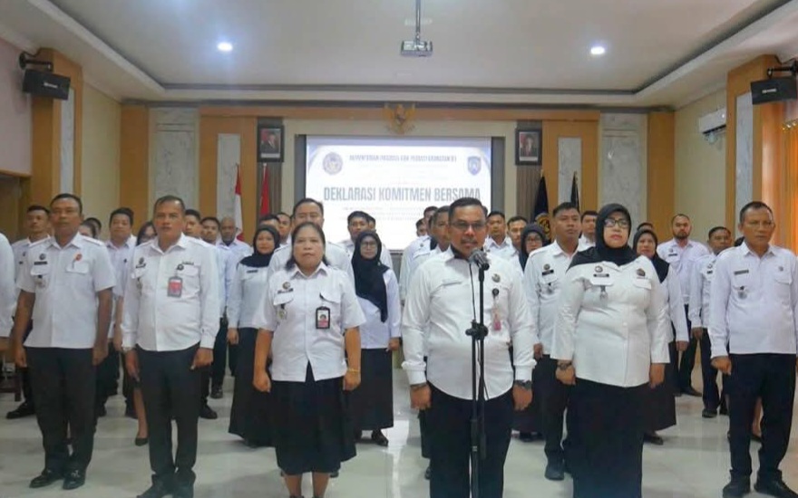 Deklarasi dipimpin langsung oleh Kepala Lapas Palu, Makmur, dan diikuti seluruh jajaran pegawai.