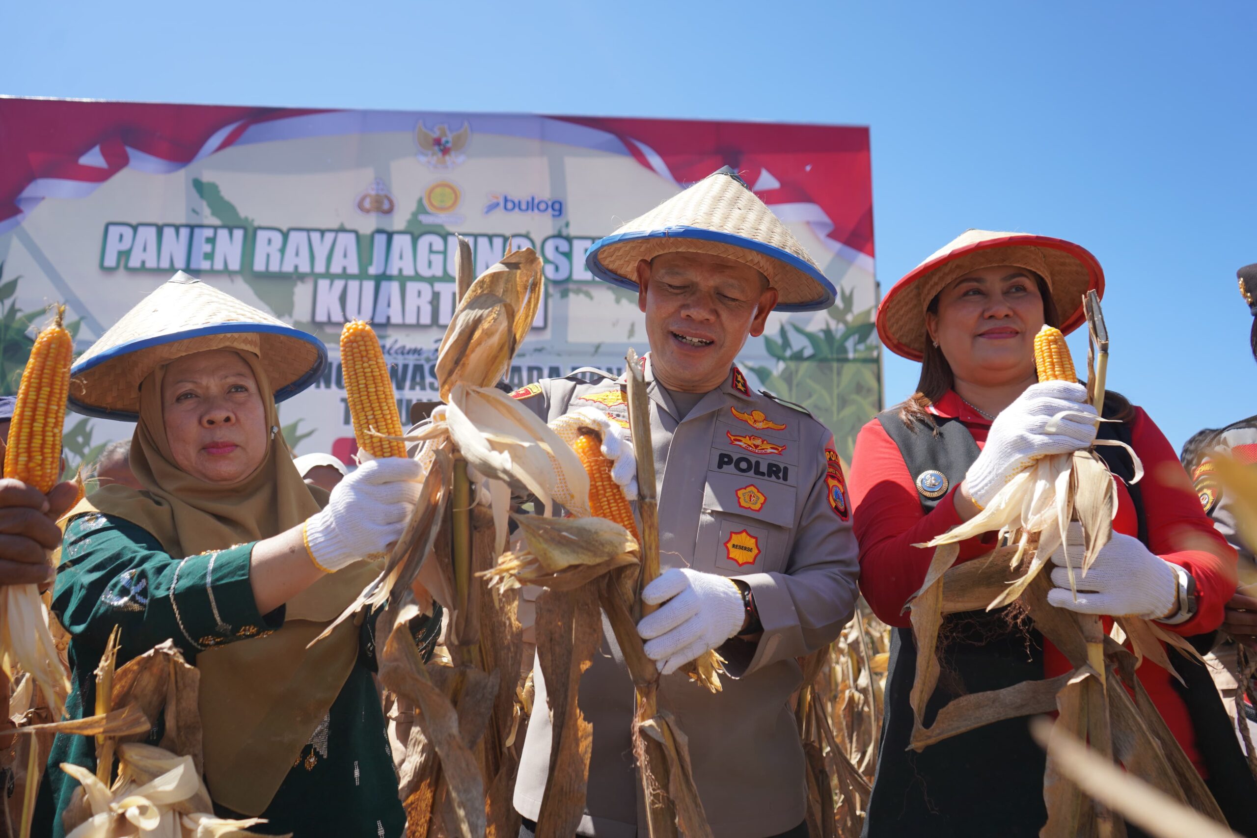 OUTENTIK-Kepolisian Daerah Sulawesi Tengah (Polda Sulteng) bersama unsur Forkopimda memanen 644 ton jagung dari lahan seluas 214,4 hektare dalam kegiatan Panen Raya Jagung Serentak Kuartal II Tahun 2025 di Desa Labuhan, Kabupaten Donggala, Kamis (5/6/2025).