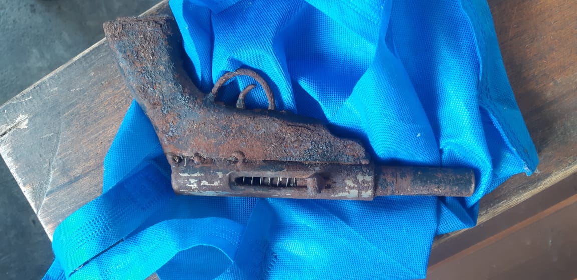 “Awalnya dikira hanya potongan besi tua, tapi setelah dilihat lebih dekat ternyata bentuknya mirip senjata api,” ujarnya.