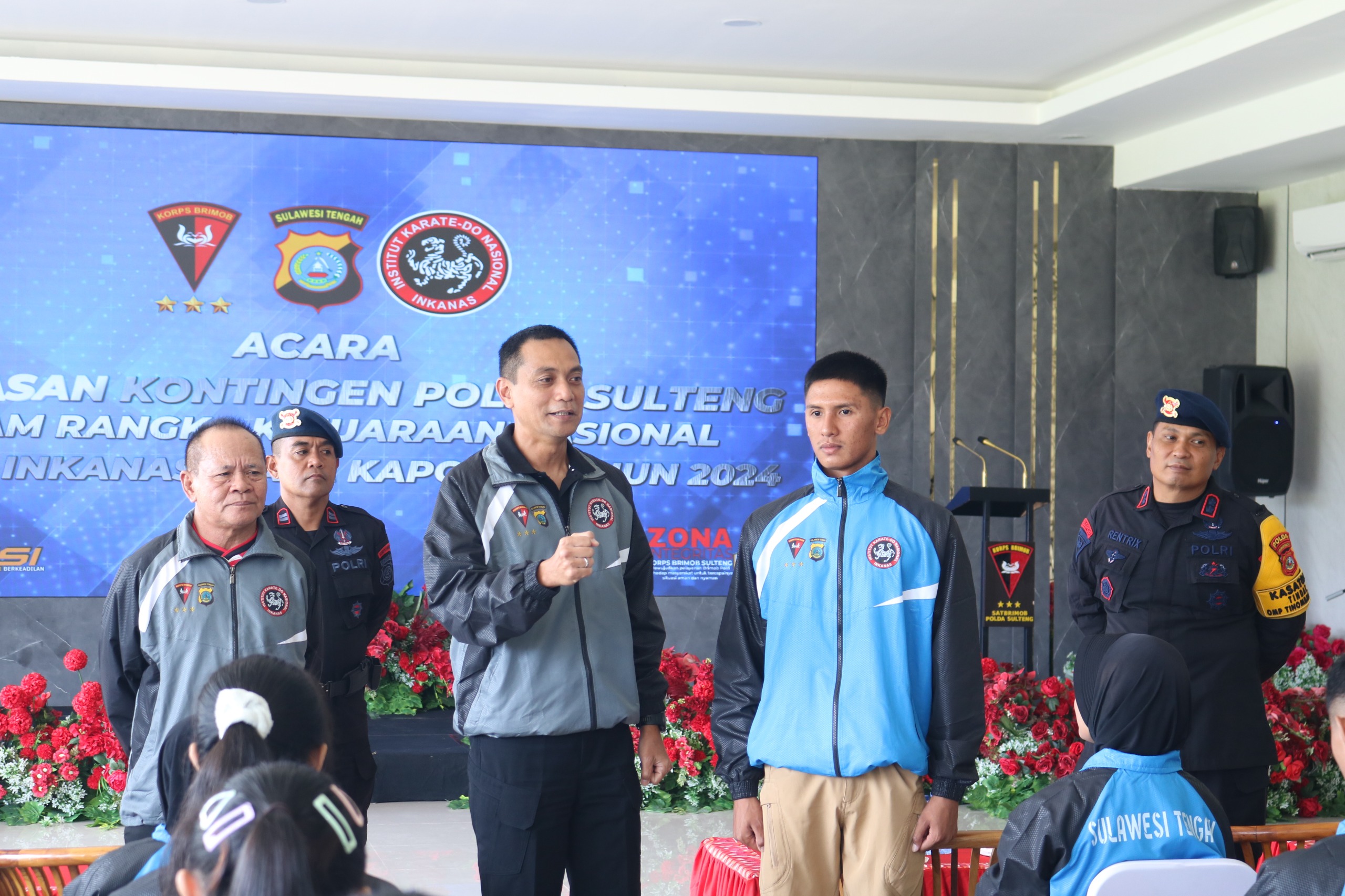 Outentik– Dansat Brimob Polda Sulawesi Tengah Kombes Pol Kurniawan Tandi Rongre, memimpin langsung acara pelepasan kontingen Polda Sulteng untuk mengikuti Kejuaraan Nasional (Kejurnas) Karate INKANAS Piala Kapolri Tahun 2024, Sabtu 07/12/2024.