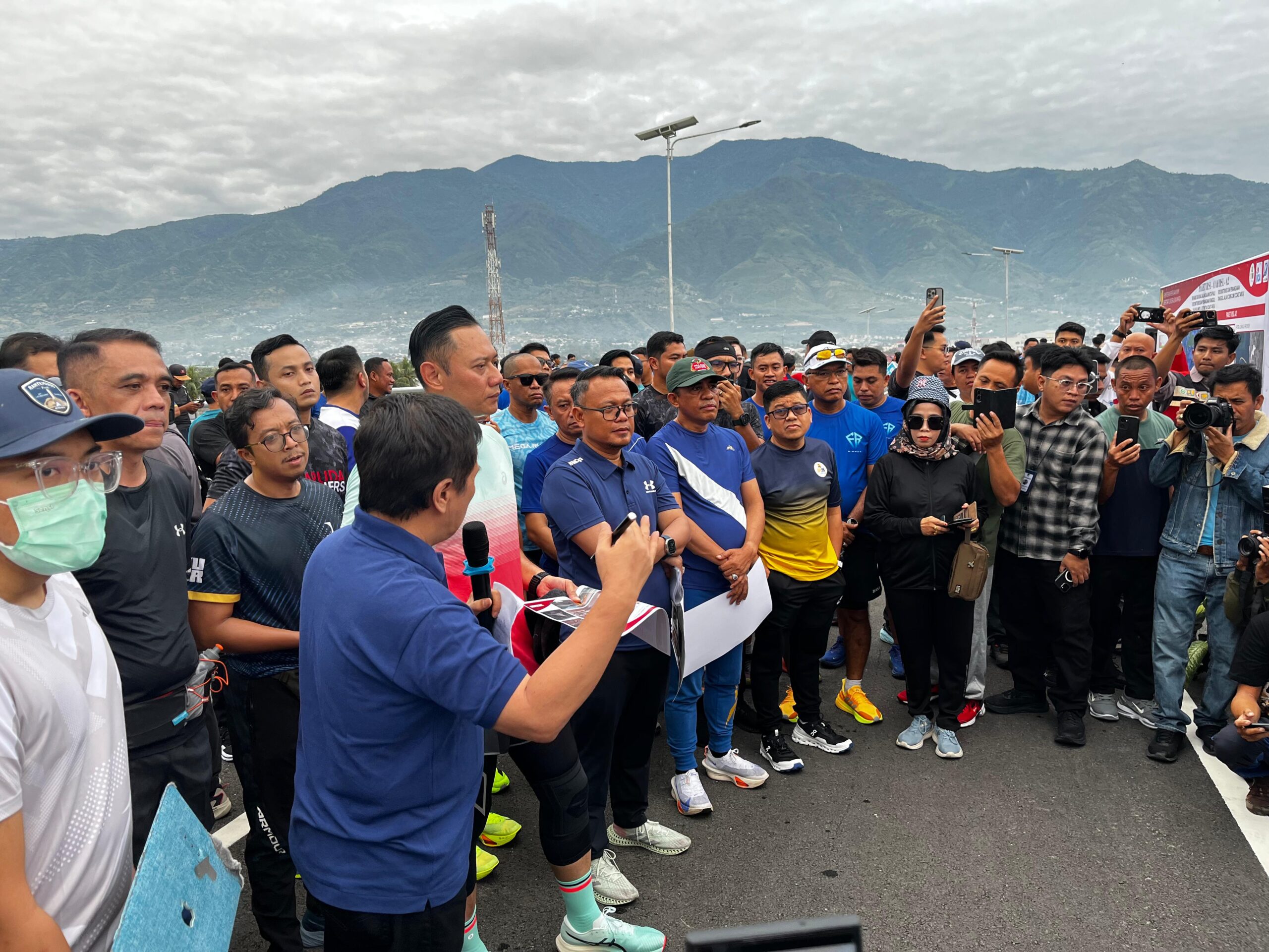 “Hari ini cuaca cerah sekali, saya senang bisa berlari bersama komunitas runners Palu sambil menikmati keindahan alam dan memantau langsung pembangunan Jembatan Palu IV. Ini bukan sekadar infrastruktur, ini adalah simbol kebangkitan masyarakat Palu dari tragedi besar tujuh tahun lalu,” kata AHY.