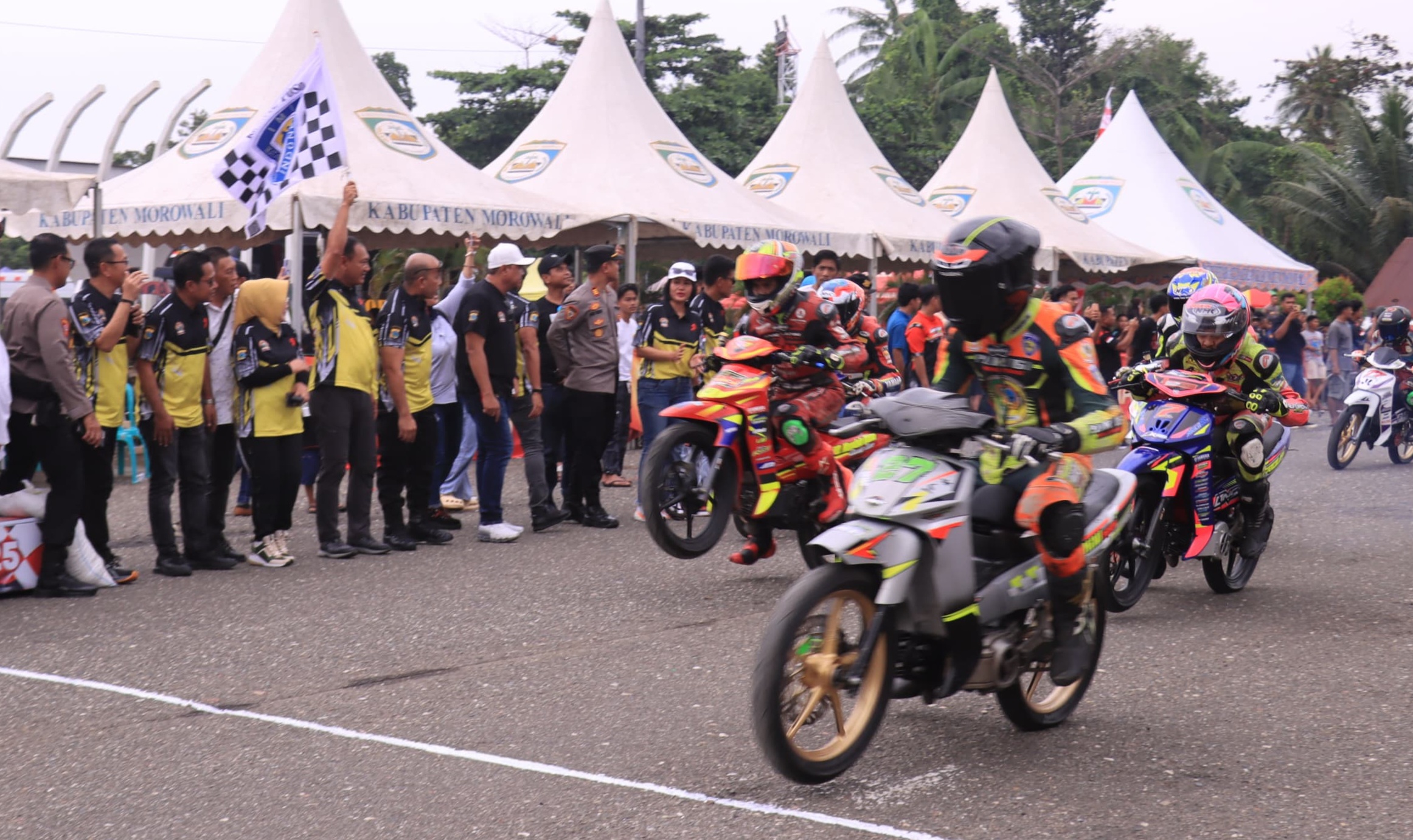 OUTENTIK-Sekitar 200 pembalap dari berbagai daerah memadati Sirkuit Alun-Alun Rumah Jabatan Bupati Morowali dalam ajang Kejuaraan Terbuka Balap Motor Piala Kapolda Sulawesi Tengah Seri 3.