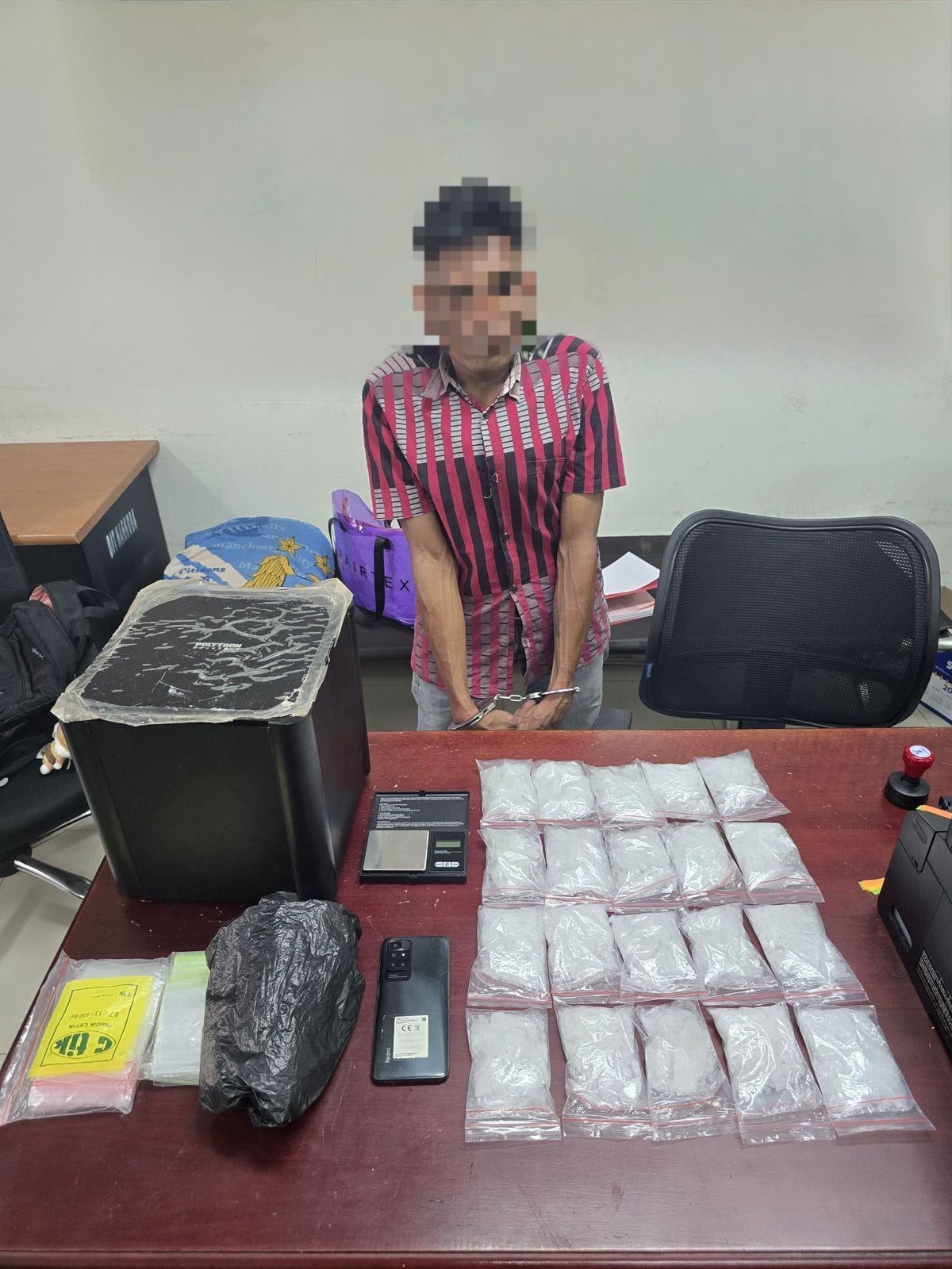Selain sabu, polisi juga mengamankan barang bukti berupa satu unit handphone, satu unit speaker, satu lembar plastik hitam, satu timbangan digital, dan dua pack plastik klip kosong.