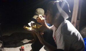 Sekitar pukul sembilan malam, setelah menempuh jalur berliku dalam pelukan senja, kami tiba di bibir pantai. Tanpa banyak jeda, tangan-tangan sigap membangun tenda dan “kalampa”(bangunan sederhana khas masyarakat Kaili, yang biasanya tegak di belakang rumah saat pesta pernikahan. Malam itu, kalampa kami bukan untuk merayakan dua hati yang bersatu, melainkan menjadi saksi pertemuan manusia dengan alam).
