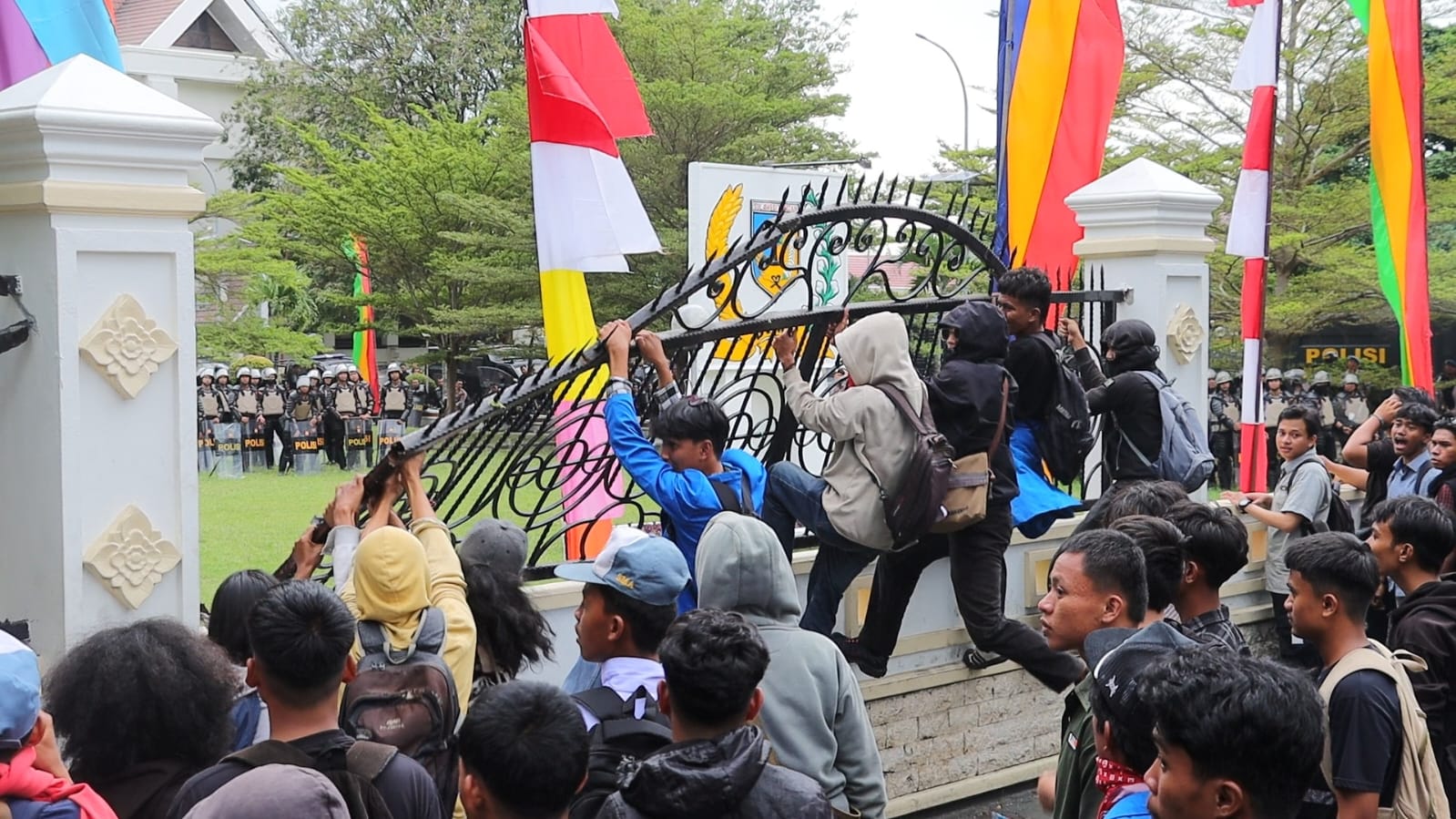 Kapolresta menambahkan, saat diamankan, mahasiswa itu memegang kaki polisi dan berusaha menariknya hingga situasi tidak terkendali.