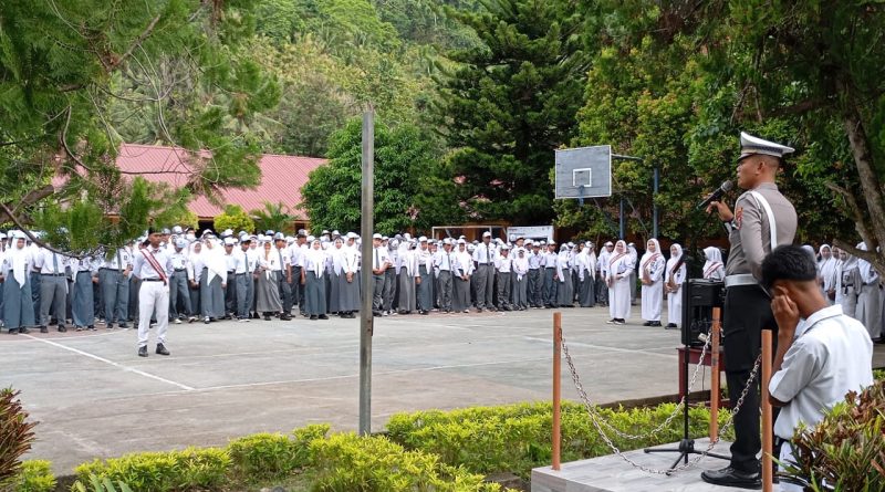 Kasat Lantas Polres Donggala, IPTU Ade Irfan Rivai Kurnia bersama jajaran memimpin upacara sekaligus memberikan edukasi di SMA Negeri 1 Banawa, SMK Negeri 1 Banawa, SMK Negeri 2 Banawa, SMP Negeri 1 Banawa, SMP Negeri 2 Banawa, dan SD Negeri 4 Banawa.