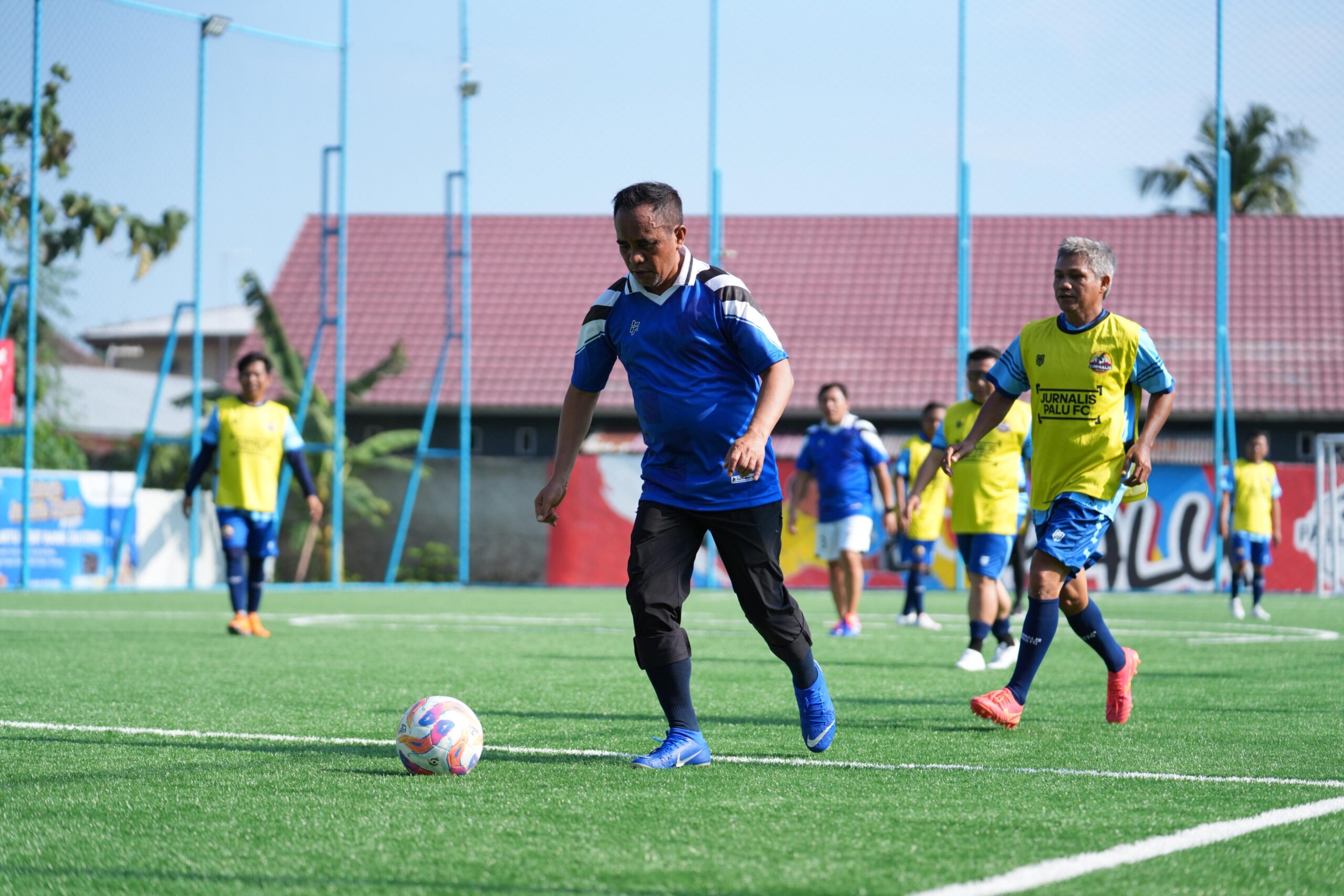 OUTENTIK-Laga persahabatan antara Pemprov Sulteng FC menghadapi Jurnalis Palu FC berlangsung seru dan penuh drama di Lapangan Palu Arena Mini Soccer, Sabtu (13/9/2025).