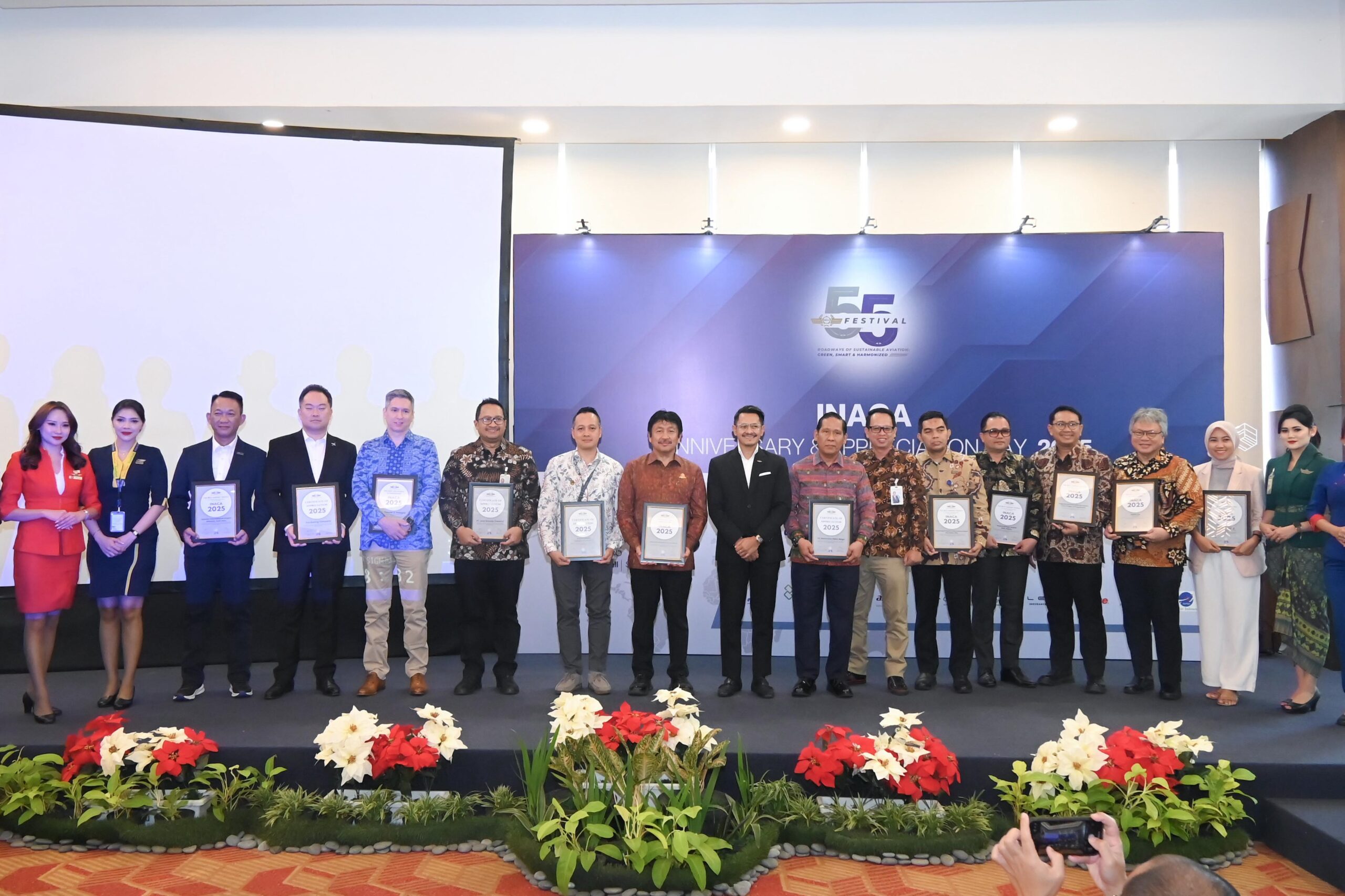 OUTENTIK-PT Jasa Raharja menerima penghargaan khusus dari Indonesia National Air Carriers Association (INACA) pada peringatan HUT ke-55 yang digelar di SOHO Pancoran Tower Splendor, Jakarta Selatan, Rabu (15/10/2025).