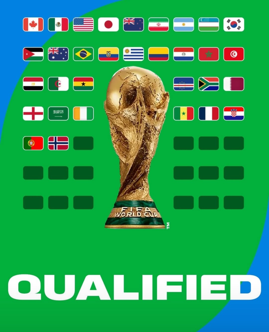 Dengan 34 slot telah terisi, sisa kuota masih akan diperebutkan melalui kualifikasi lanjutan serta jalur play-off antarbenua.