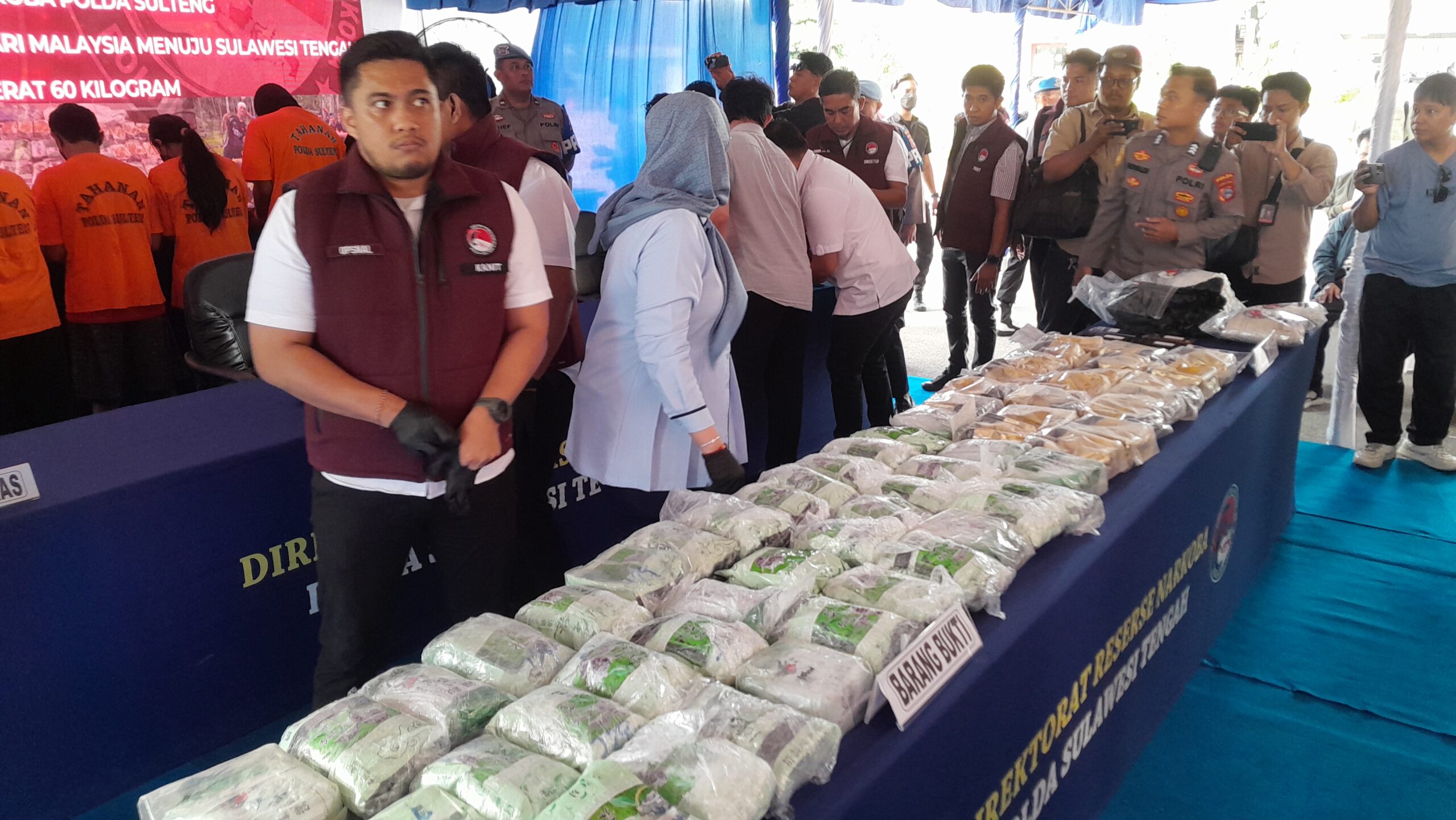 “Dari tangan para tersangka diamankan narkotika jenis sabu sebanyak hampir 60 bungkus atau sekitar 60 kilogram. Dengan jumlah ini berarti menyelamatkan kurang lebih 300 ribu jiwa masyarakat Sulawesi Tengah,” ujarnya dalam konferensi pers, Selasa 18 November 2025.