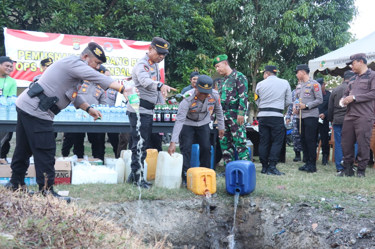 Pemusnahan dilaksanakan secara terbuka, disaksikan unsur Muspida, tokoh agama, dan tokoh masyarakat, serta dituangkan dalam Berita Acara Pemusnahan Minuman Keras.