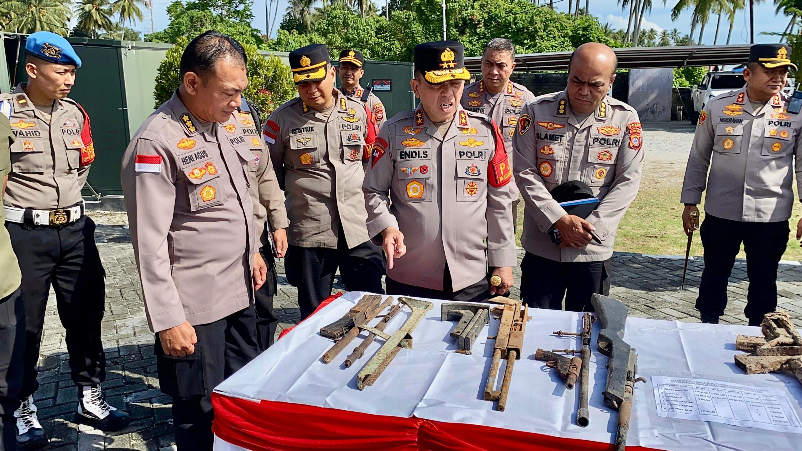 OUTENTIK-Polda Sulawesi Tengah mengumumkan hasil Operasi Madago Raya sepanjang tahun 2025 yang berhasil mengamankan 8 senjata api rakitan dan 313 butir amunisi dalam rangka menjaga stabilitas keamanan pasca penindakan jaringan terorisme di wilayah Poso.