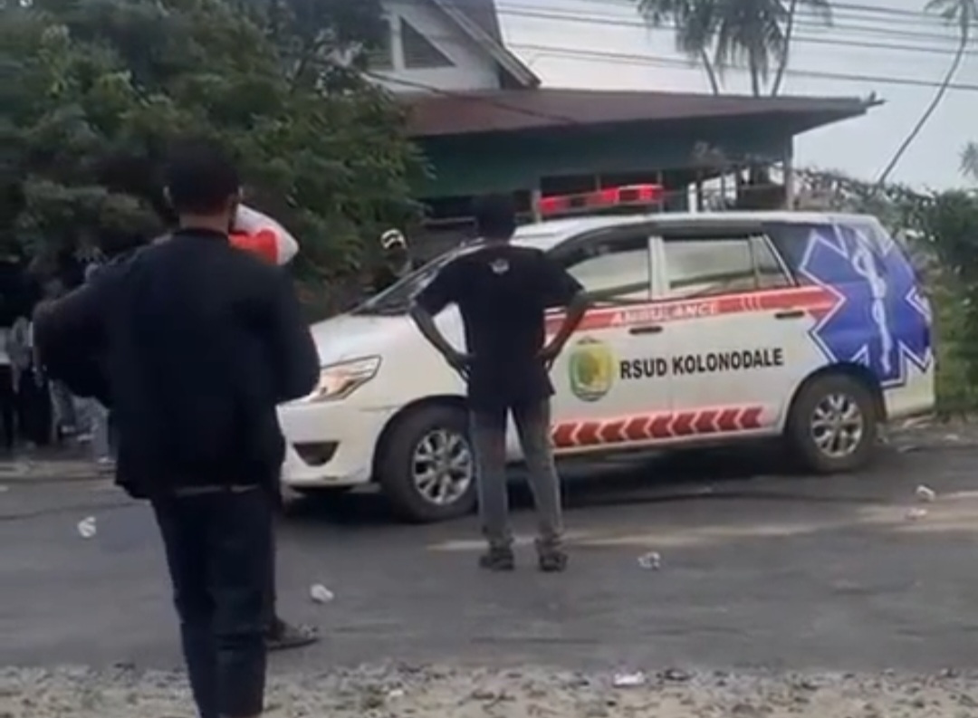 Sebuah ambulans rujukan milik RSUD Kolonodale, Kabupaten Morowali Utara, Sulawesi Tengah, yang membawa pasien ICU menuju RSUP Wahidin Sudirohusodo Makassar, terpaksa dihentikan dan diminta putar balik oleh massa aksi.