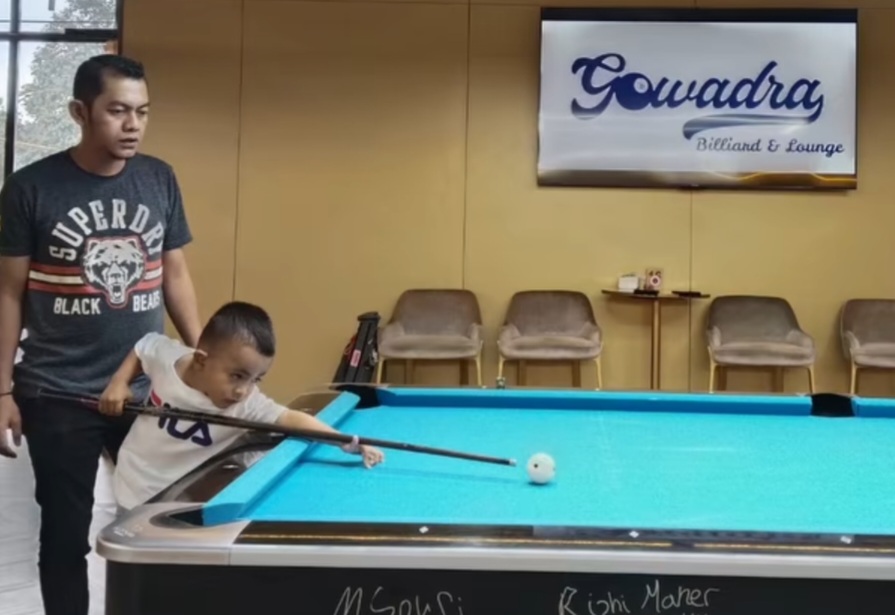 “Awalnya saya lihat dia suka manjat-manjat meja biliar, bidik-bidik bola. Saya perhatikan bidikannya sudah lurus,” terangnya.