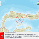Gempa 4,2 SR Guncang Pohuwato Gorontalo, Berpusat Di Laut Berita, Humaniora|2 September 20252 September 2025oleh Gayanara OUTENTIK-Gempa bumi dengan magnitudo 4,2 mengguncang wilayah Tenggara Pohuwato, Gorontalo, pada Senin